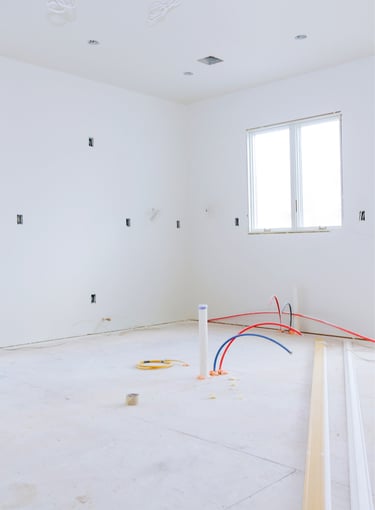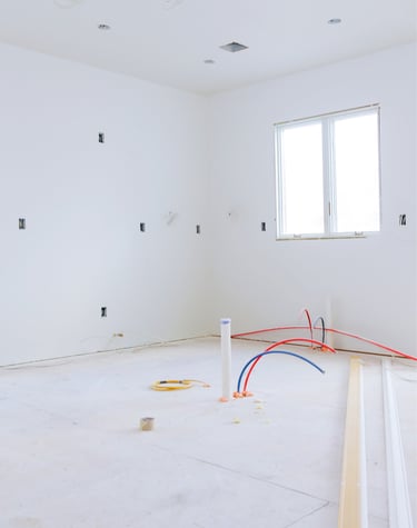 carrelage, peinture, plomberie, électricité, cloisons, sols et finitions.